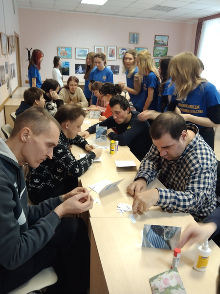 Сегодня для ребят, посещающих отделение социальной реабилитации, абилитации инвалидов на базе государственного учреждения "Территориальный центр социального обслуживания населения Партизанского района г.Минска» волонтерский отряд «Доброе сердце» ЧУО «Минский колледж предпринимательства» провел праздничное мероприятие, посвященное Дню защитников отечества и вооруженных сил Республики Беларусь. Для ребят был проведен спортивный конкурс и мастер класс по изготовлению открыток