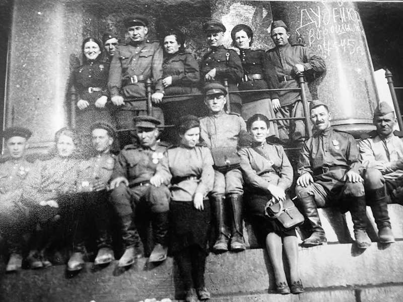 На фото Лидия Кондратьевна запечатлена у Рейхстага 8 мая 1945 года, где она была в числе тех, кто первыми услышали долгожданную весть о Победе.