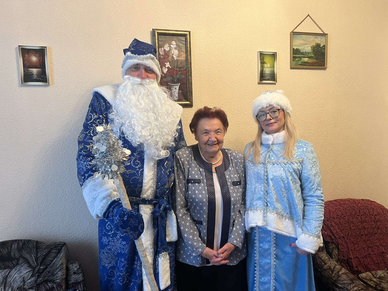 Специалисты отделения дневного пребывания для граждан пожилого возраста в лице Снегурочки и Деда Мороза поздравили юбиляршу Галину Васильевну, в этом году ей исполнилось 90 лет!