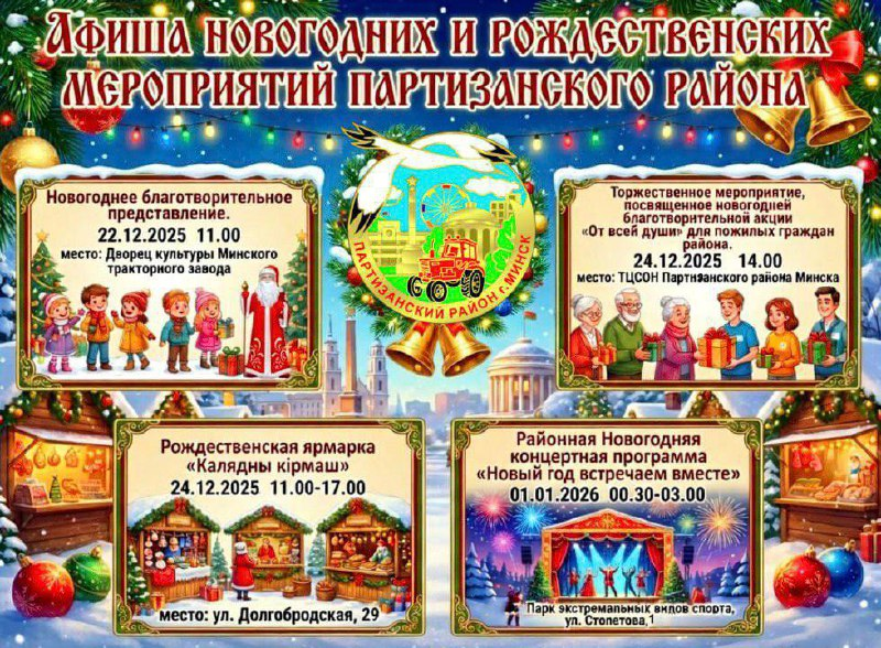 В преддверии новогодних и рождественских праздников, администрация Партизанского района представляет анонс запланированных мероприятий для жителей и гостей района: