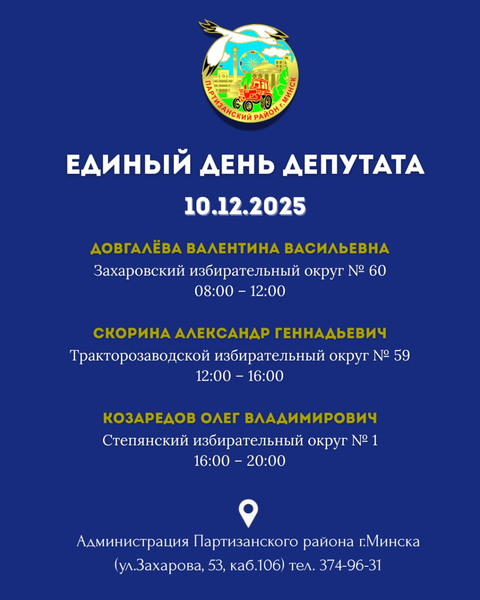 С 8:00 до 20:00 минчане смогут прийти без предварительной записи и вне зависимости от места проживания на прием к депутату Минского городского Совета депутатов.