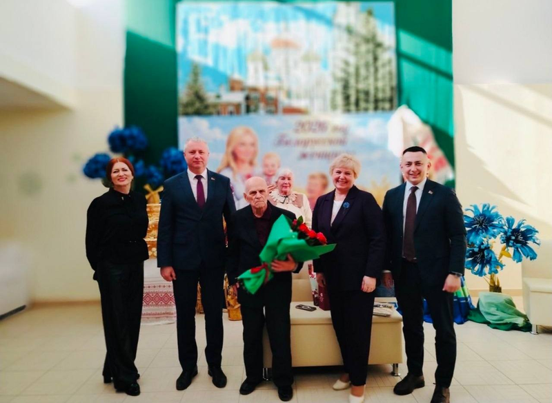 Глава администрации Партизанского района г. Минска Поляков Николай, заместитель главы администрации Бондарук Роман и начальник управления социальной защиты населения администрации Петрова Светлана поздравили нашего дорогого юбиляра, который на протяжении своей жизни не только служил своему народу, но и стал настоящим символом мужества и стойкости.